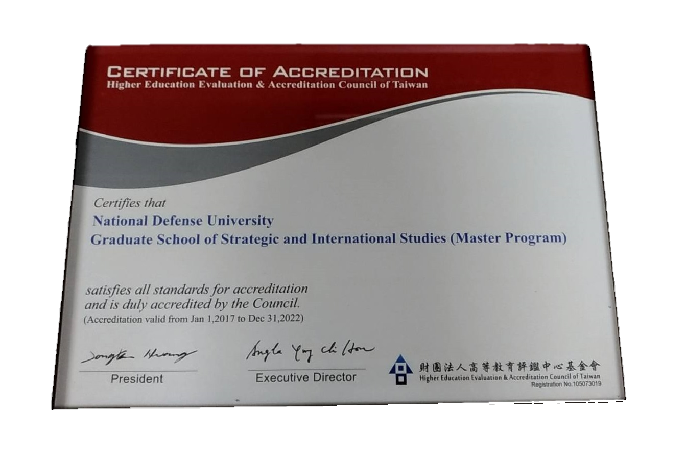 GISS has passed all prior educational assessments. In response to the implementation of the third educational assessment on November 30, a work team has been established during the process of the preparation. Military faculty and administration staff in the work team will lead graduate students to prepare for the assessment, report the progress on the institute meeting once a month and campus meeting in March, June, September, and December, so as to seek advice from experts in the field and make improvements in accordance with the timing of each assessment.